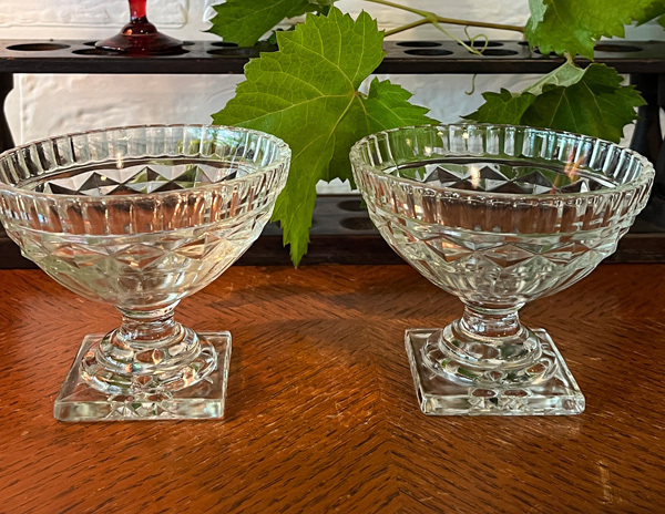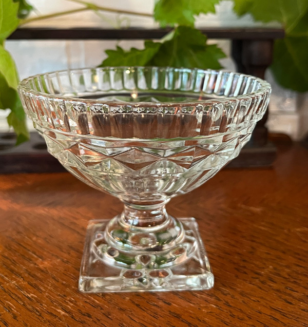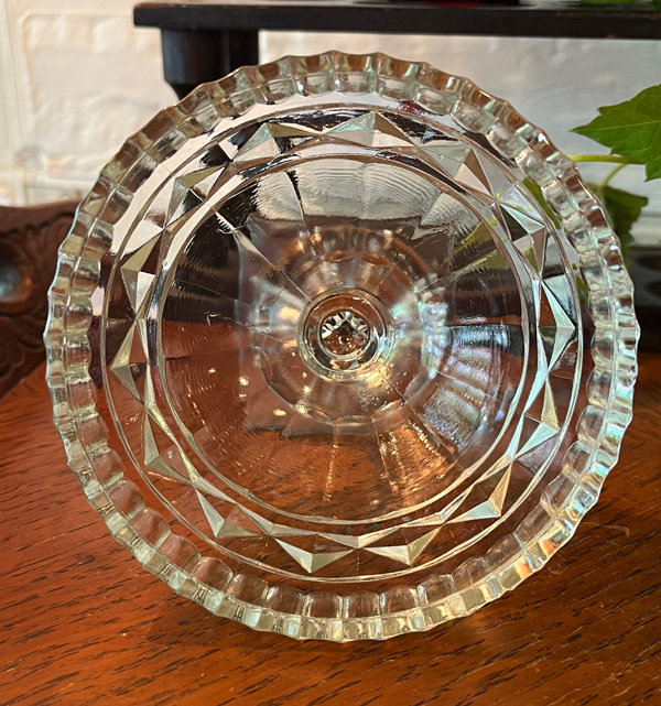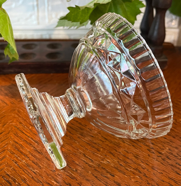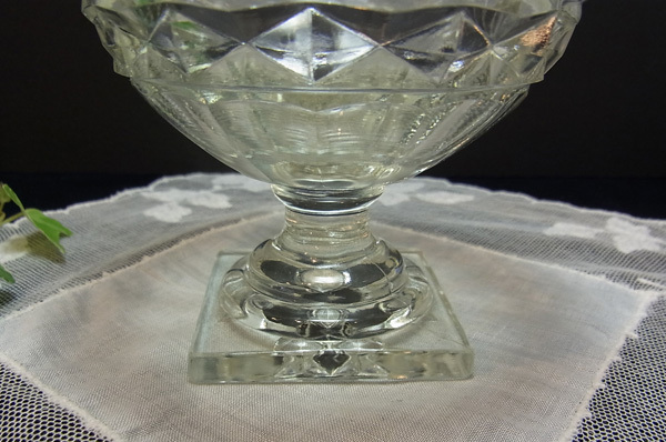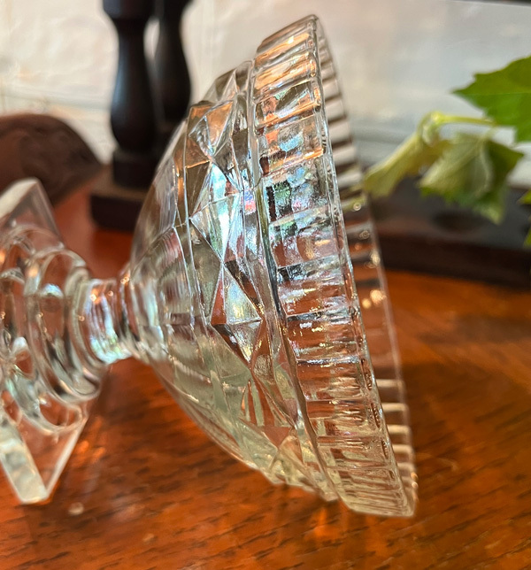 カット紋様の美しいどっしりとしたデコ期のデザート・グラスです。