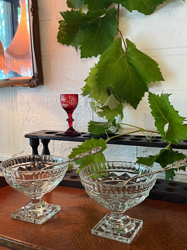 少し黄色味を帯びたプレスガラスも、素敵な趣を添えています。