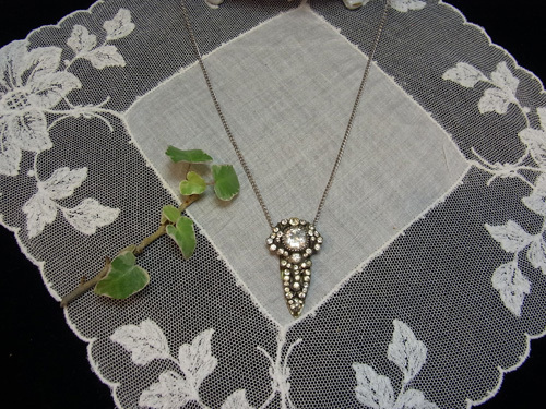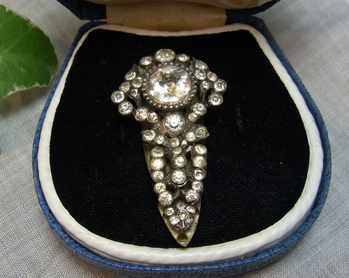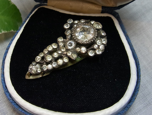 真鍮のベースにきちんとセットされたペーストガラスの細かなカットの輝きが美しいクリップです♪