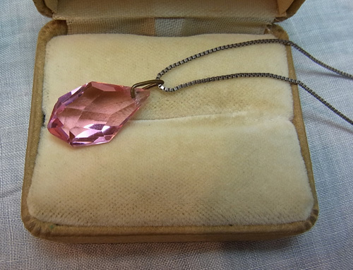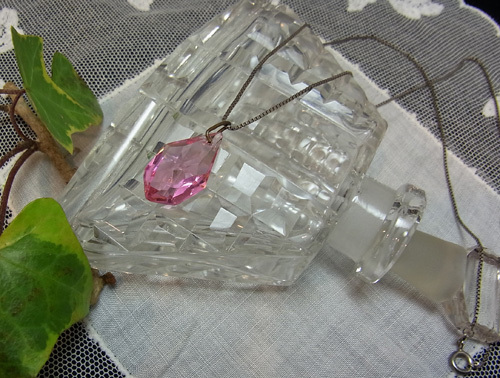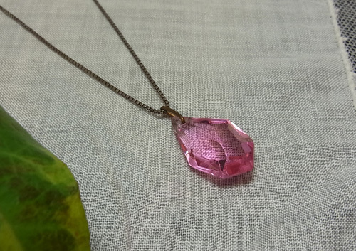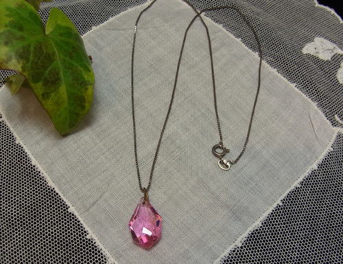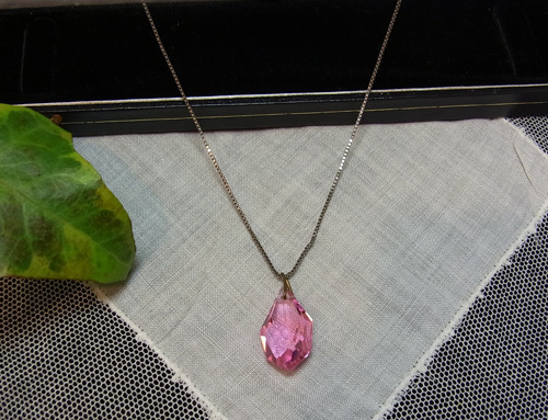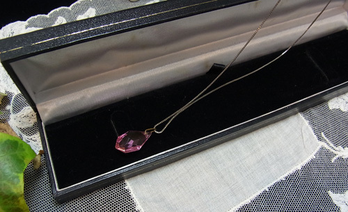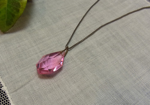 ピンクガラスには、素敵なファセット・カットが施されていて、透明感ある美しいピンク色の輝きを見せています。