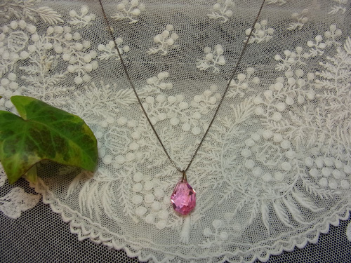 カットの美しいピンクの雫型のルースが一粒.....