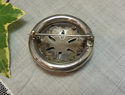 立体的に作られたこのブローチ、台座のシルバーの凝った細工に、繊細な彫り込み装飾が印象的です⭐️