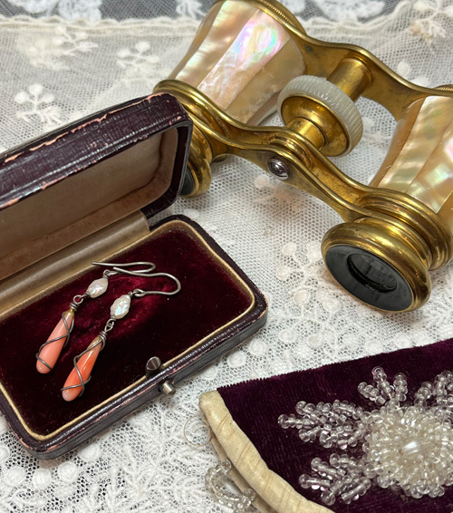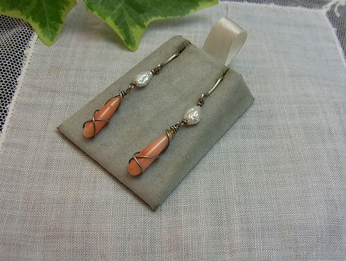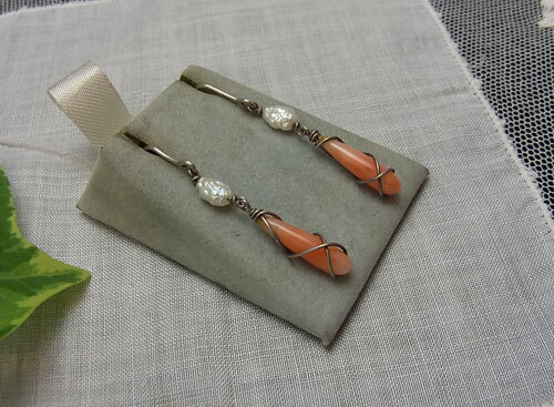 パールもバロック・パールを使っているのが、エンジェルスキンの珊瑚とお互いの雰囲気を活かしているようです。