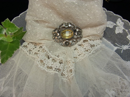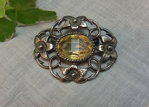 シトリンと見間違うような色味を見せるシトリン・ガラスがとても美しいブローチです♪