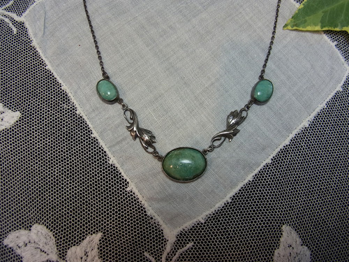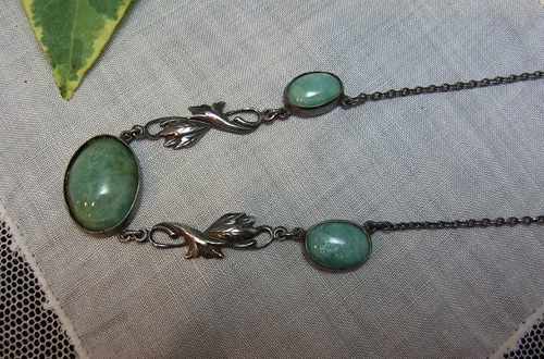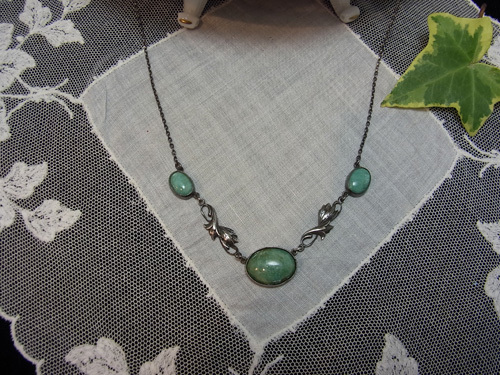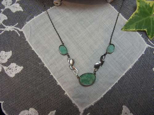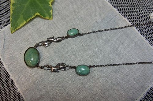 アベンチュリンの柔らかな色味とシルバー細工の曲線が、優しい雰囲気を見せるネックレスです♪