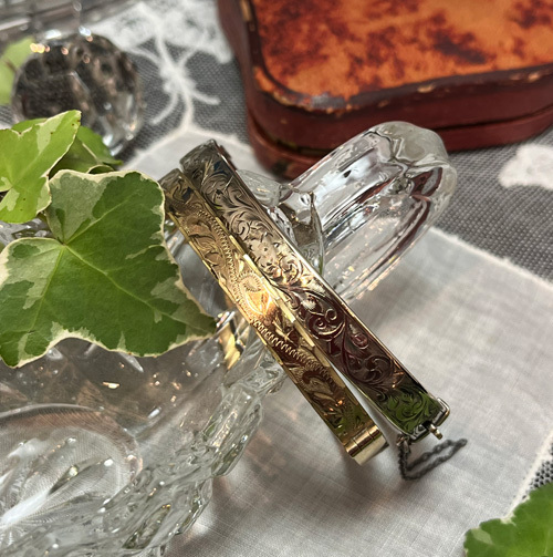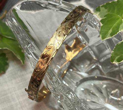 9金・ロールゴールドのバングルです。