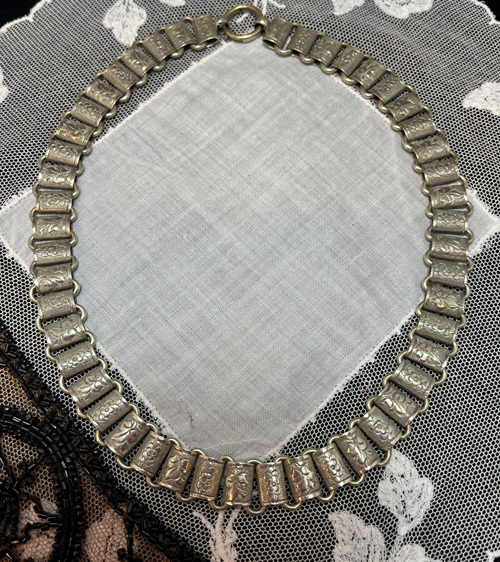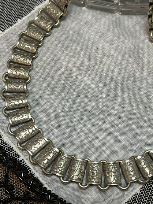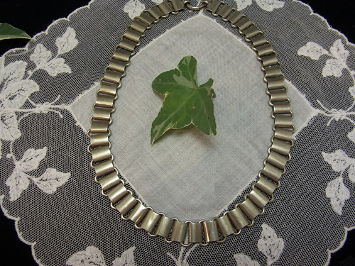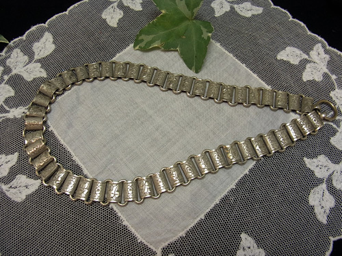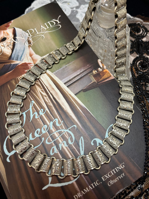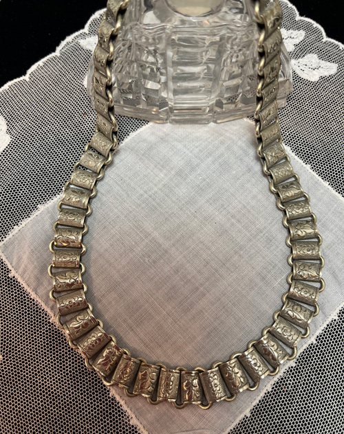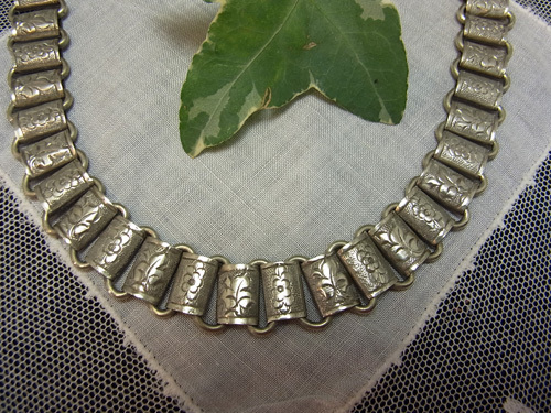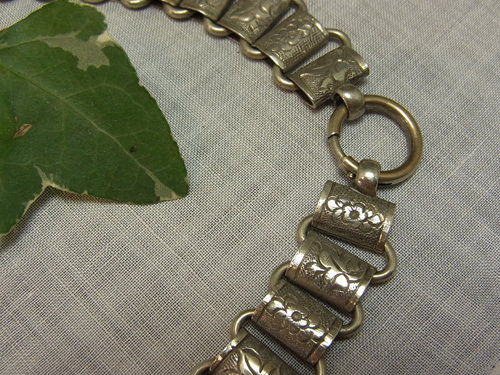 個々のパーツには、片面に愛を表す勿忘草、そしてアイビーの彫り込み装飾が施されていて、交互にリンクされています。