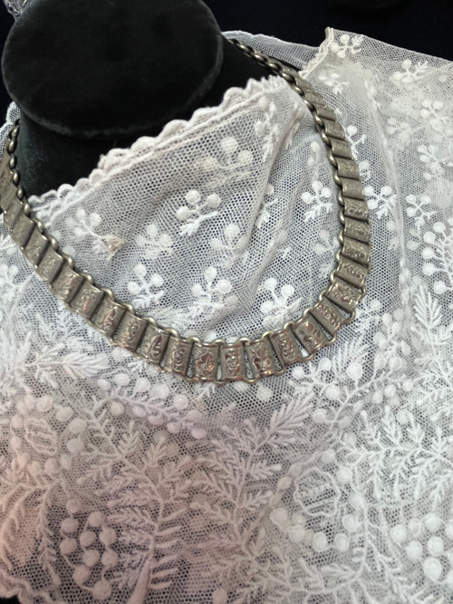 タートルネックのニットなどにもアンティークならではの素敵なアクセントを付けてくれますよ。