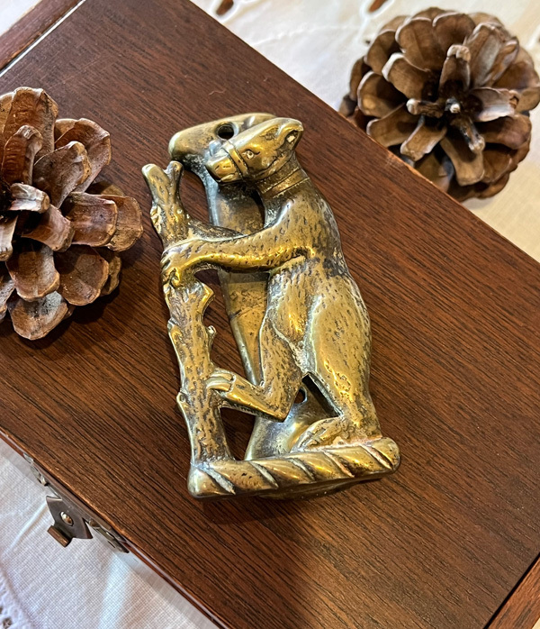 冬眠から目覚め、春の訪れを喜んでいるかような躍動感ある熊さんのドア・ノッカー、何か夢があって素敵です♪
