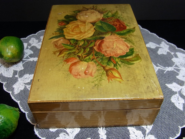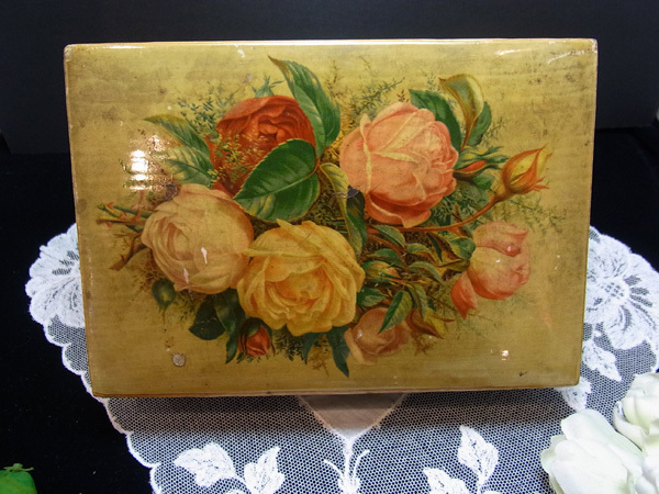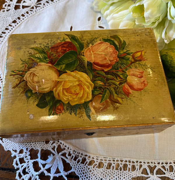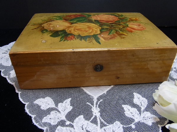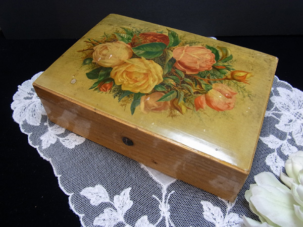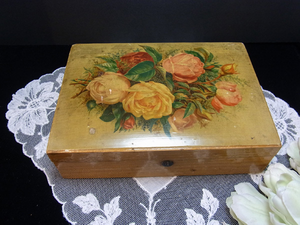 ロンドン郊外のフェアで出会った薔薇のデコバージュの木箱です。