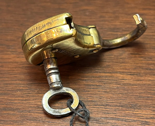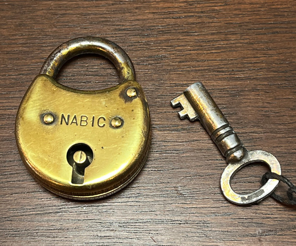 厚みのある真鍮のボディと、引き輪?とキーは鉄で作られています。