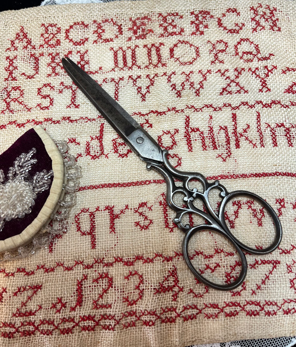 アルファベットのサンプラーなど、子供の頃から刺繍を学んだ歴史もあり、身近なハサミも職人の手仕事でいろいろ作られています⭐️