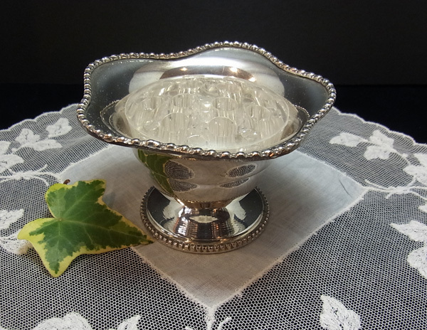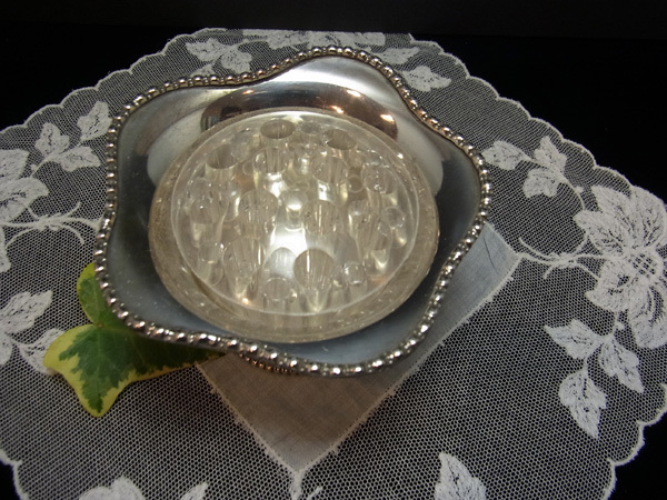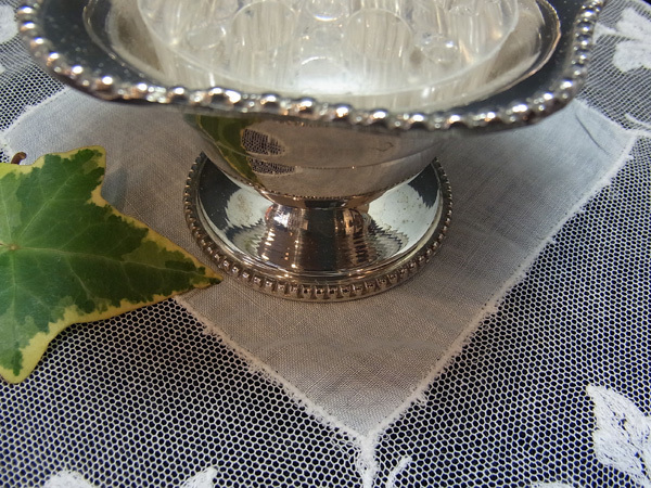 花弁の様なフリルをとった広口は、深いカットのビーディング細工が華やかさを見せます。